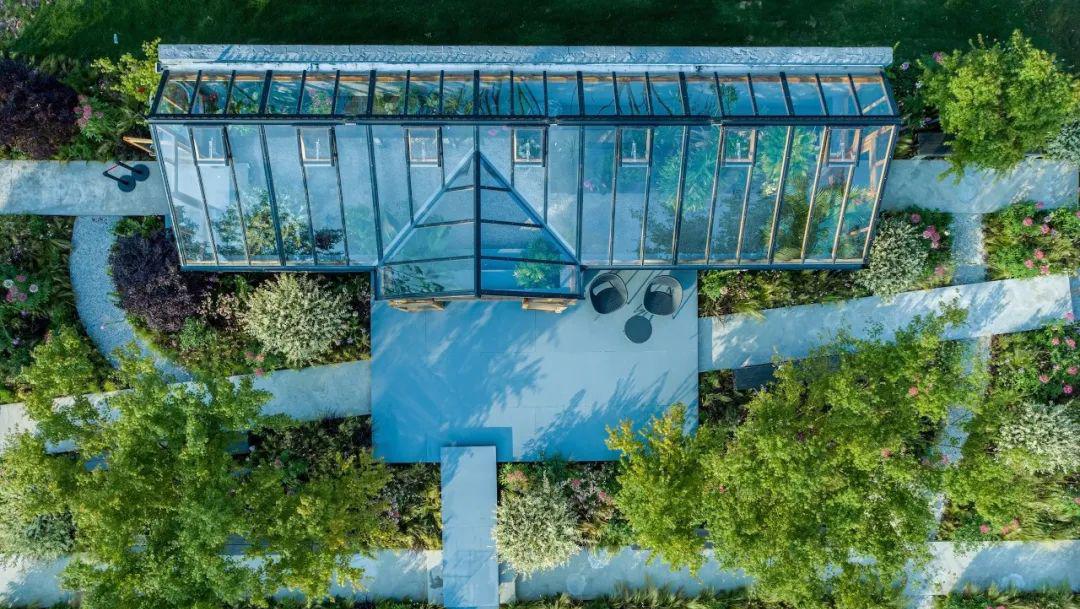 花园将传统温室硬朗线条和充满女性柔美感觉的植物有机结合。花园前部是自然丰富的植物种植,后部为实用的温室空间。设计师试图将英国村舍花园与灰粉色系进行完美搭配,丰富的设计元素如同现代舞,令人与花园产生独特的交流语言。